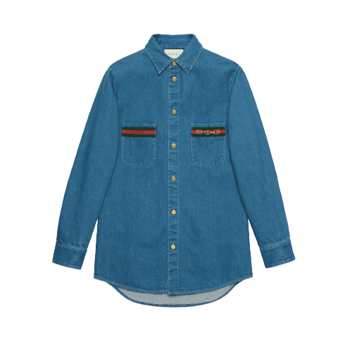 Stonewashed denim shirt with Webgucci